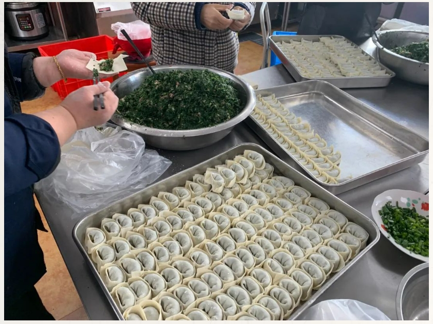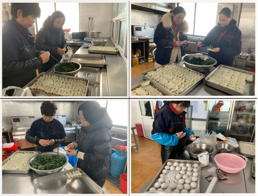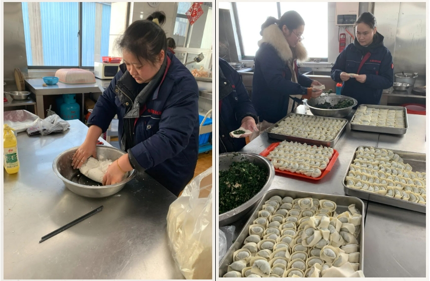 大家分工協(xié)作,和面、調(diào)餡、包餛飩,整個(gè)過(guò)程井然有序有條不紊,整個(gè)食堂洋溢著節(jié)日的喜慶氛圍。